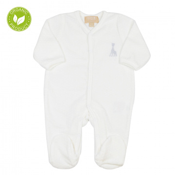 Dit fluwelen jacquard boxpakje is wit en heeft lange mouwen en voetjes. De drukknoopjes over de gehele lengte tot aan de voetjes bieden extra gemak bij het verschonen.